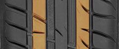 В плечевой области покрышка Orium High Performance более жесткая, что делает более точным ответ на рулевые манипуляции и даёт возможность легко входить в повороты под разным углом. В центре находится т.н. опорная секция — её представляет почти сплошное ребро с редкими несквозными насечками. Ребро стабилизирует ходовую динамику в скоростном режиме.
