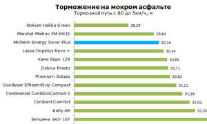 Качество, доказанное тестами С целью доказать преимущества своей разработки над современными шинами, что предлагают конкуренты, Michelin обратилась к немецким тестерам, представляющим организацию Dekra. Вследствие тестов на преодоление 30 тысячного километража по европейским дорогам было зафиксировано, что резина Мишлен Энерджи Сейвер плюс гораздо лучше реагирует на сброс скорости, если речь идёт о торможении на мокрой дороге.