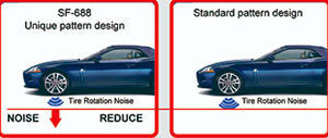 Автомобильные шины Sunfull SF688 имеют почти классическую ненаправленно-симметричную протекторную дорожку, которая уверенно предохраняет движение автомобиля от неожиданных реакций колёс на рулевое управление и торможение. Благодаря данному протектору характер вождения в летний сезон приобретёт еще большую уверенность и превосходные черты, при этом водителю останется наслаждаться фактом, что резина Санфулл СФ688 стоит поистине «смехотворные» деньги на фоне ведущей, дорогой и более популярной брендовой продукции.