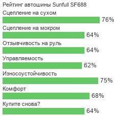 Шины известной марки Sunfull характеризуются доступной стоимостью и достойными техническими параметрами. Всесезонная модель SF688 отличается среди других такими свойствами: