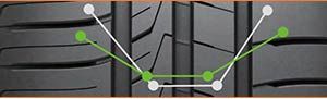 Благодаря углам поперечных канавок улучшается качество и стабильность выполнения агрессивных рулевых команд в дождливую погоду.