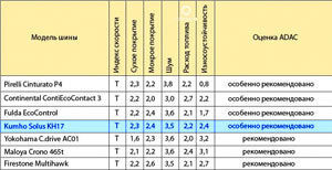 Рейтинги и тесты «Особо рекомендуемые» автоклубом ADAC, летние шины Кумхо КХ17 Солус — это высочайшее качество, неоднократно заверенное сравнительными тестами как западных, так и российских экспертных комиссий.