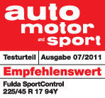 Fulda Sport Control — летняя шина ультра-премиум класса, презентация которой состоялась в конце 2010-ого. Именно тогда, в ноябре экспертами из немецкого TÜV SÜD Automotive была проведена серия тестов, по результатам которых модель-дебютант от Fulda заняла высшие оценки в дисциплинах на торможение в условиях сухой и дождливой дороги. Эксперты отмечают: у покрышки немецких технологов очень впечатляющая устойчивость к гидропланированию!