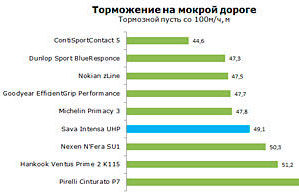Рейтинги и тесты Модель Сава Интенса ЮХП известна на рынке весьма с давних пор. Тестовые отделы давно заприметили разработку и брали её в качестве участницы сравнительных тестов на протяжении пары лет. Одним из журналов-оценщиков стал ADAC, который тестируя шины-17-дюймовки, отметил что модель авторезины Sava Intensa UHP обладает действительно потрясающе высокой абразивной устойчивостью, что не сможет ни порадовать тех, кто агрессивен в управлении колёсами. По данным этого автоклуба, шина получила 6-ое место рейтинга на фоне других 16 конкуренток.