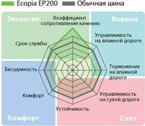 Модель Bridgestone EP200 Ecopia отличается высочайшей производительностью и вереницей других выдающихся показателей, столь значимых для водителей, а именно характеризуется: