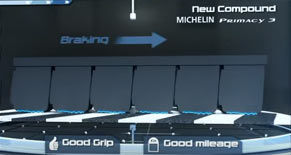Протектор шины Michelin Primacy 3 оборудован массой ламелей, за чей счёт расширяется контактируемая с дорогой область покрышки и оптимизируется торможение, становясь на определённый процент короче, чем у конкурирующих моделей-аналогов. В частности, эксперты-тестеры отмечают сокращение тормозного пути со скорости 100 км в час в условиях сухой дороги на целых 2,2 метра. На мокром же покрытии этот показатель достигает полтора метра.