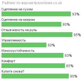 Приблизительно оценить степень её производительности можно по сравнительному графику. На нём видно, что эта шина стала ощутимо тише в качении, а её протектор оказался более выносливым и готовым к движению на крупнозернистых поверхностях. Кроме прочего показатели энергетической выгоды у модели Kelly UHP также привлекают внимание низкими значениями.