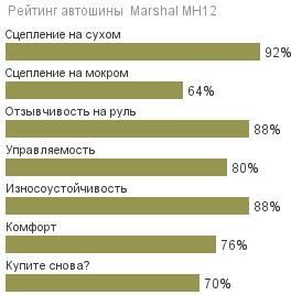 Автомобильная шина модели Marshal MH12 входит в разряд покрышек высшей производительности. Для этой серии характерны многие преимущества автошин, выпускаемых под брендом Кумхо хотя бы потому, что заведует производством этой продукции один и тот же концерн из Южной Кореи (Маршал — дочернее предприятие Kumho).