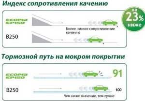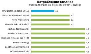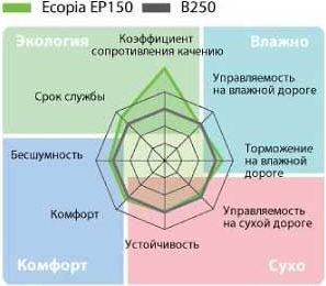Bridgestone Ecopia EP150 имеет на 15% улучшенное сопротивление качению, что на 3% уменьшает потребление топлива и в среднем на 3% снижает выброс СО2.