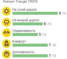 Triangle TR978 — модель летних автомобильных шин, выпускаемых в Китае характеризуется следующими техническими особенностями: