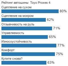 Автомобильные шины Toyo Proxes 4Автошины Toyo Proxes 4 оборудованы эффектным средством достижения комфортно-безопасного хода на излишне влажных дорогах в летний сезон. V-образно направленный протектор этой разработки 2007 года позволит меньше беспокоиться за чёткость и правильность исполнения водительских (ваших) команд. Мы смело рекомендуем эту покрышку для комплектации легкового авто, так как за её репутацию говорит масса положительных отзывов.