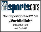 Помимо хороших оценок простых потребителей, модель Continental ContiSportContact 5P была высоко оценена экспертными комиссиями, клубами и специализированными изданиями. Заметны улучшения на 5-10% по части эксплуатационных качеств, если говорить о сравнении с простой ContiSportContact 5.