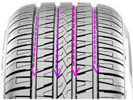 Особенности строения Вытесняющие лишнюю влагу и налипающий снег желобки, работающие в сочетании с глубокими опоясывающими каналами-кольцами, не допускают забивкu протектора осадками, которые мешают нормальному сцеплению и движению в целом.