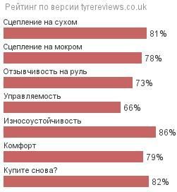 Как видно по графику, резина Lassa Competus H/P достаточно неплохо оценена и покупателями. В целом этот вариант очень хорош для тех, кто желает сэкономить не в ущерб качестве/надёжности. По ряду характеристик модель значительно превосходит показатели динамики многих своих конкуренток из среднего ценового класса.