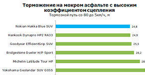 • Понижение показателей тормозного пути на влажных и сухих дорогах;