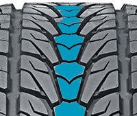 Стабилизация динамических качеств На плечевой зоне Нексен Роадиан Аш/Пи СУВ можно наблюдать более широкие ребра, в то время как центральные фигурные блоки не столь расширены, как на периферии. Это объясняется тем, что форма плечевых элементов способствует защите от забивки углублений постоянно циркулирующей во время движения по мокрому асфальту водой, в то время, как центр более ответственен за стабилизацию тормозных команд.