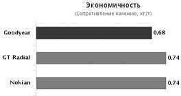 Особенности и преимуществаШины Гудиер Карго Марафон гарантируют безопасное движение грузоперевозчика и летом, и зимой! Эта инновационная модель — союз технологий, обеспечивающих универсальность и продлевающих рабочий срок службы шины. Как следствие — при сбережении всех своих качеств, покрышка с успехом может использоваться круглогодично. Важно отметить, что автошину Goodyear Cargo Marathon очень тщательно тестировали в рамках допремьерных внутренних испытаний компании-разработчика. По итогам этих тестов протектор смогли доработать до лучших показателей. Также резина была взята в программу независимых тестов одного популярного издания. Результаты одной из дисциплин теста можно видеть ниже.