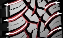 - За счёт максимальной открытости протекторного формирования развивается лучшая тяга на гравии, песке и других видах бездорожного полотна;