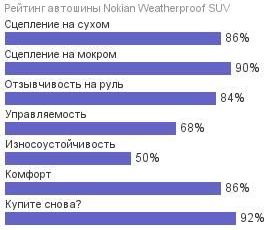 Итоги тестирований В специальных тестах Auto Motor und Sport за 2016 год (размер 215/60 R17) модель Nokian Weatherproof SUV заняла почётное 3-е место. Эксперты шинного дела отмечают, что покрышка финского бренда стала намного универсальнее, чем привычные всем мультисезонные автошины для кроссоверов.