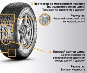 В целом, в какую бы погоду водитель не выезжал на дорожное покрытие в шинах Continental ContiCrossContact LX2, он, безусловно, выделит для себя следующие особенности покрышки, которыми являются: