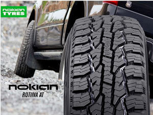 Автомобильные шины Nokian Rotiiva A/T Модель Nokian Rotiiva A/T производится финской компанией, которая очень авторитетна и популярна на нашем рынке авторезины. Шина для внедорожников, обладает ненаправленным и агрессивным дизайном типа “All-Terrain”, что в дословном переводе означает готовность к практически любым обстоятельствам на дороге.