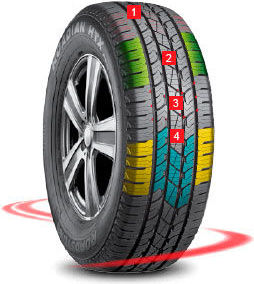 Шина Роадстоун Роадиан АшТиИкс РАш5 оснащена специфическими 3D-канавками, дающими возможность эффективно выталкивать мелкие кусочки грунта из протекторной области. Таким образом, удается обеспечить хорошую управляемость на земляных, грунтовых покрытиях и на лёгких сугробах.