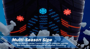 Мульти-сезонные качества протектору автошин Нексен НБлю Фор Сизон задают особые элементы — насечки-сайпы, оптимизированные как для летней, так и для зимней эксплуатации. В частности прорези на ребре в центральной зоне позволяют шинам увереннее сцепляться со снежным покрытием, а надрезы на плечевых областях улучшают динамику в более теплый сезон.