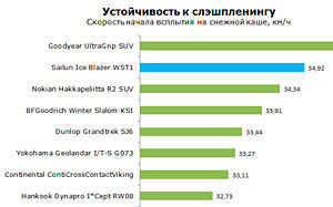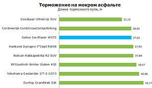 Рейтинги и тесты Следует сказать, что шина Sailun Ice Blazer WST1 не единожды выступала в рамках программ независимых журналистов, что устраивали тесты с её участием. Как видно по графикам, для своего уровня модель показала весьма хорошие способности и по части торможения на мокром покрытии, и по части устойчивости к планированию на снежной слякоти — а это, пожалуй, два наиболее важных показателя качества оценки зимней резины.