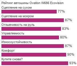 Ввиду излишней мягкости протекторной резины в жаркую погоду, не рекомендуется испытывать возможности шины Ovation W686 Ecovision в летнюю пору года — это может не только испортить впечатление от поездки, недостаточной управляемости, но и даже стать причиной ДТП.