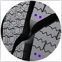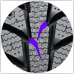 - Повышенная тяга обеспечивается за счет трехмерных кромок протектора, которые увеличивают площадь сцепления.