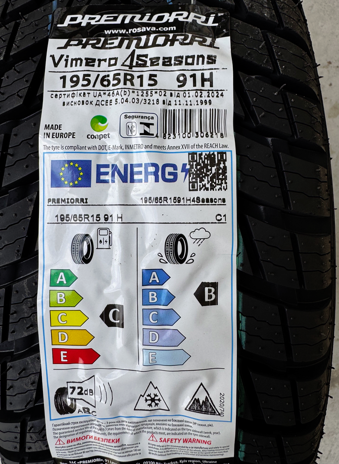 Инновационная резиновая смесь шин содержит повышенное содержание натурального каучука, силики и морозостойких присадок. Это позволяет сохранять эластичность протектора при низких температурах, предотвращая задувание и одновременно обеспечивает высокую износостойкость. Силика в составе способствует экономии горючего за счет снижения сопротивления качению (класс С по европейской маркировке) и улучшает сцепление на мокрой дороге (класс В). Система 3D-ламелей эффективно отводит воду, талый снег и грязь из зоны контакта, минимизируя риск аквапланирования. Шины также отличаются низким уровнем шума, что обеспечивает комфортную езду, и крепкой бортовой зоной с декоративным ребром для защиты дисков от повреждений. Благодаря тщательному тестированию в реальных условиях и компьютерному моделированию Premiorri Vimero 4Seasons демонстрируют долговечность и стабильную производительность. Они доступны в типоразмерах от 185/65 R14 до 225/45 R17, что делает их универсальным выбором для широкого спектра легковых автомобилей.
