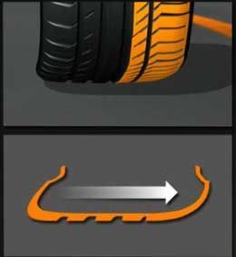 Зоны плеча и черты профиля позволяют пятну контакта оставаться в идеальной расширенной форме независимо от скоростных поворотов, которые предпримет водитель.