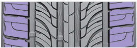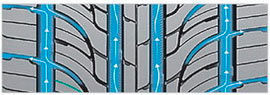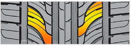 Шины Roadstone N7000 обладают сложными по геометрии рёбрами, в т.ч. центральным, которое при своих сужающихся засечках обладает лучшей способностью к безопасной и стабильной реализации рулевых маневров.