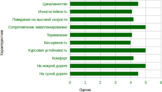 Приведем график усредненных показателей летних шин Zeta Azura.