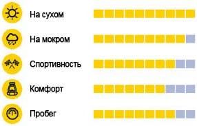 | Полиэстеровые вкладки | Устойчивость к ударным нагрузкам | | Асимметричность протектора | Хорошая производительность на любой дороге | | Три жестких опорных ребра | Отточенность ответов на рулевое управление |