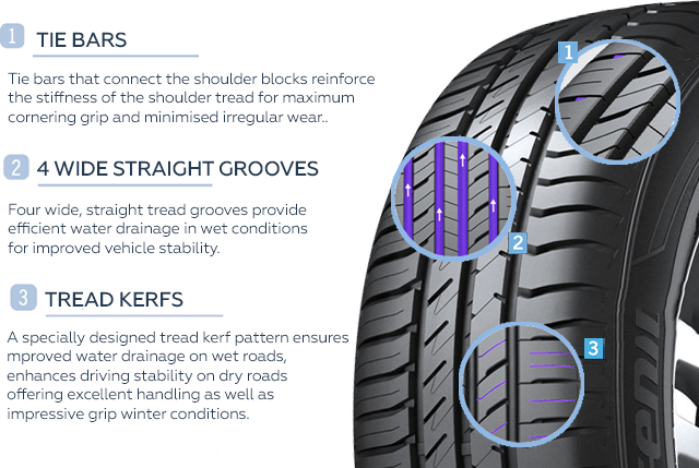 Летние шины класса "туринг", предназначенные для компактных автомобилей, купе и седанов. Они обеспечивают превосходные характеристики управляемости и торможения на мокрой и сухой дороге, а также низкий уровень шума и комфортную езду.