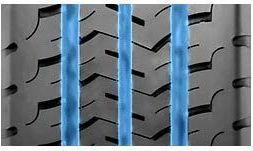 - В целях защиты от аквапланирования шина предохранена тремя дренажными каналами солидной ширины, что придают большую уверенность при езде в дождь или после него, когда дорога покрыта лужами;