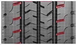 - Чтобы прямолинейное движение было более стабильным, конструкторы разработали систему из основных центральных рёбер, что находятся на протекторе. Благодаря им шина более послушна, быстрее откликается на команды, имеет достаточную жесткость конструкции;