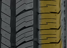 Борьба с планированием Для защиты от аквапланирования и усиления захвата дороги сквозь слой дождевых осадков придумана обширная система из полостей, проходящих в разном направлении. Все борозды, но главным образом — три базовых кольцевых канала — идеально справляются с задачей молниеносного вывода воды из пятна контакта, чтобы шина Marshal KL51 Road Venture APT не теряла тяговых сил в плохую погоду и прекрасно управлялась, несмотря на лужи.