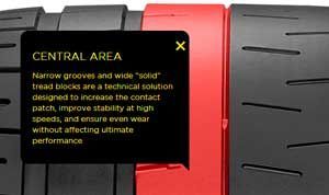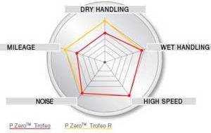 Все вышеперечисленные особенности достигнуты благодаря наличию в составе компаунда шин Pirelli PZero Trofeo R силикона, различных натуральных масел и особых присадок. Жесткие центральные ребра протектора повышают устойчивость автомобиля при движении на повышенных скоростях, они также улучшают сцепление колеса с дорожной одеждой и повышают качество управления.