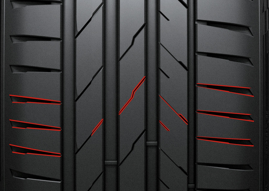 Одной из главных особенностей K137A Ventus Evo SUV является использование нового состава резиновой смеси с добавлением специализированных смол. Эта технология оптимизирует гистерезис, то есть превращение энергии от трения контакта с дорогой, что улучшает сцепление при разных температурных условиях. Благодаря этому шина получила рейтинг A за сцепление на мокрой поверхности для всех размеров, обеспечивая безопасную езду даже в дождь. Асимметричный рисунок протектора с широким наружным плечом максимизирует жесткость в направлении движения, улучшая сцепление на сухих дорогах. Технология Chamfered Design выравнивает края блоков протектора, обеспечивая равномерное распределение давления контакта и повышенное трение. Это улучшает тормозные характеристики на сухих поверхностях на 6% по сравнению с предыдущей моделью. Оптимизированные боковые канавки на плечевых блоках обеспечивают эффективный отвод воды, уменьшая риск аквапланирования и улучшая торможение на мокрой дороге на 7% и управляемость на 4%. Эти характеристики делают шину идеальной для динамической езды в разных условиях. Шина K137A Ventus Evo SUV оснащена плоским боковым профилем, который повышает жесткость при поворотах, обеспечивая превосходное сцепление и стабильность даже на высоких скоростях. Баланс между ламелями, боковыми канавками и поперечными связями обеспечивает равномерную жесткость блоков, что способствует равномерному износу и увеличению пробега более чем на 30% по сравнению с предыдущей моделью. Технология равномерного распределения давления контакта оптимизирует форму шины, обеспечивая долговечность даже под большими нагрузками.