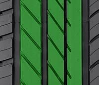 - Развитые центральные секции, имеющие наклонные насечки и одно практически лишенной сегментов ребро, лишают водителя необходимости регулярно контролировать и поддерживать выбранный курс при прямолинейном скоростном движении;