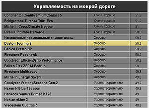 Протекторная секция Dayton Touring 2 чрезвычайно развита, гарантируя водителю полное послушание колёс на дороге, при любой их влажности.