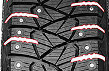 Шипование по высшему разряду Отдельного упоминания заслуживает ошиповка резины Goodyear Ultra Grip 600, так как это полноценная модель-шиповка, а не просто фрикционная шина, взаимодействующая с дорогой только за счёт особенностей своего рисунка протектора. Шипы находятся на выверенном расстоянии друг от друга, что в комбинации с их плотной посадкой в гнёзда и особой формой наконечника позволяет водителю практически забыть о таком эффекте, как выпадение элементов противоскольжения.