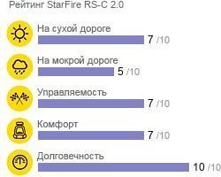 Автомобильные шины Starfire RS-C 2.0 Автошина Starfire RS-C 2.0 изобретена дочерним отделением компании Cooper, которое при моделировании данной резины учло большинство наиболее важных пожеланий водителей. В результате вышел удобный практичный «летний» протектор, обладающий сочетанием искомых характеристик без ущерба для комфортности и экономичности.