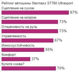 Если составить список главных особенностей, шины модели Стармакс СТ760 Ультраспорт — это прежде всего: