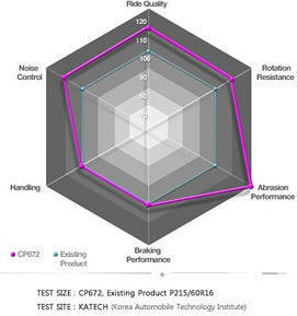 Выигрышные качества В ряду привлекательных моментов автомобильной резины Roadstone Classe Premiere 672 (CP672) важно отметить тишину, комфорт хода автомобиля в этих шинах, как, впрочем, и нормализацию его поведения при совершении резких маневров. По графику сравнительных характеристик можно видеть, насколько эта шина превосходит свою более старую «соседку». По ключевым показателям, включая динамику на мокрых дорогах, разница составляет порядка 10-20%.