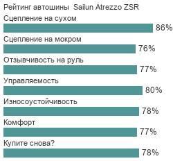 Максимальные оценки по внутренней классификации компании-производителя Sailun Atrezzo ZSR получила за производительность в мокрых (9 баллов) и сухих условиях (10 баллов).