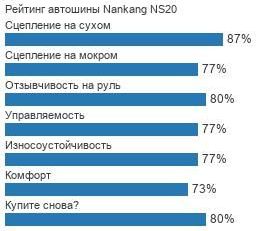 Модель Нанканг НС20 за годы нахождения на рынке (с 2008-ого) не снискала сильно высоких оценок от независимых экспертов и автоклубов. Журнал «Auto bild sportscars», проводя тест летних шин размера 245/30 r20 (2018), нашел покрышку достаточно устойчивой к аквапланированию, комфортной и тихой в ходу, отметив также небольшую цену этой резины, но большую оценку модели не поставил. Немецкий журнал «sport auto» в тесте летних шин размеров 245/35 r19 и 265/35 r19 (2018) также не выставил шине высокий рейтинг, но неплохо оценил её возможности по сцеплению/управляемости на мокрой дороге и опять же хорошо отозвался об устойчивости к аквапланированию.