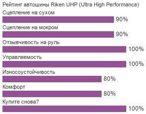 Эта модель автошин, для которых характерен очень короткий и стабильный тормозной путь, реакции на вращение руля, агрессивные повороты. За сравнительно небольшие деньги, что владелец легковой спортивно-ориентированной машины отдаст за комплект покрышек Riken UHP, он получит уровень динамики, который так лаконично характеризует указанная в скобочках расшифровка аббревиатуры UHP — ультра высокую производительность.